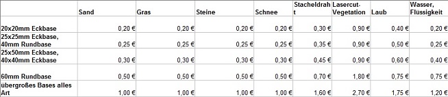 Bei uns haben Sie die Auswahl zwischen verschieden gestalteten Bases, je nach Komplexität variiert dabei der Preis.